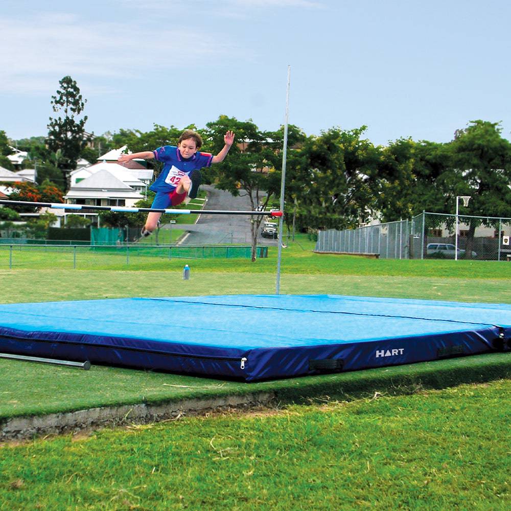 The HART Scissor Mat – 2 Base Unit with Spike Mesh Top is made with single density block foam. The two bases join together with buckles, straps and a hook and loop on the top surface to minimise separation of mats. All our high jump mats are premium mats designed and made by HART Sport. Constructed using heavy duty PVC vinyl, HART Block Scissor Mats provide long-lasting performance, impact reduction, comfort and safety for all athletes performing a scissor jump.