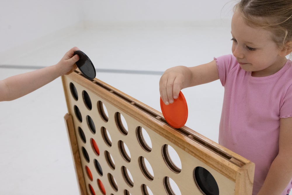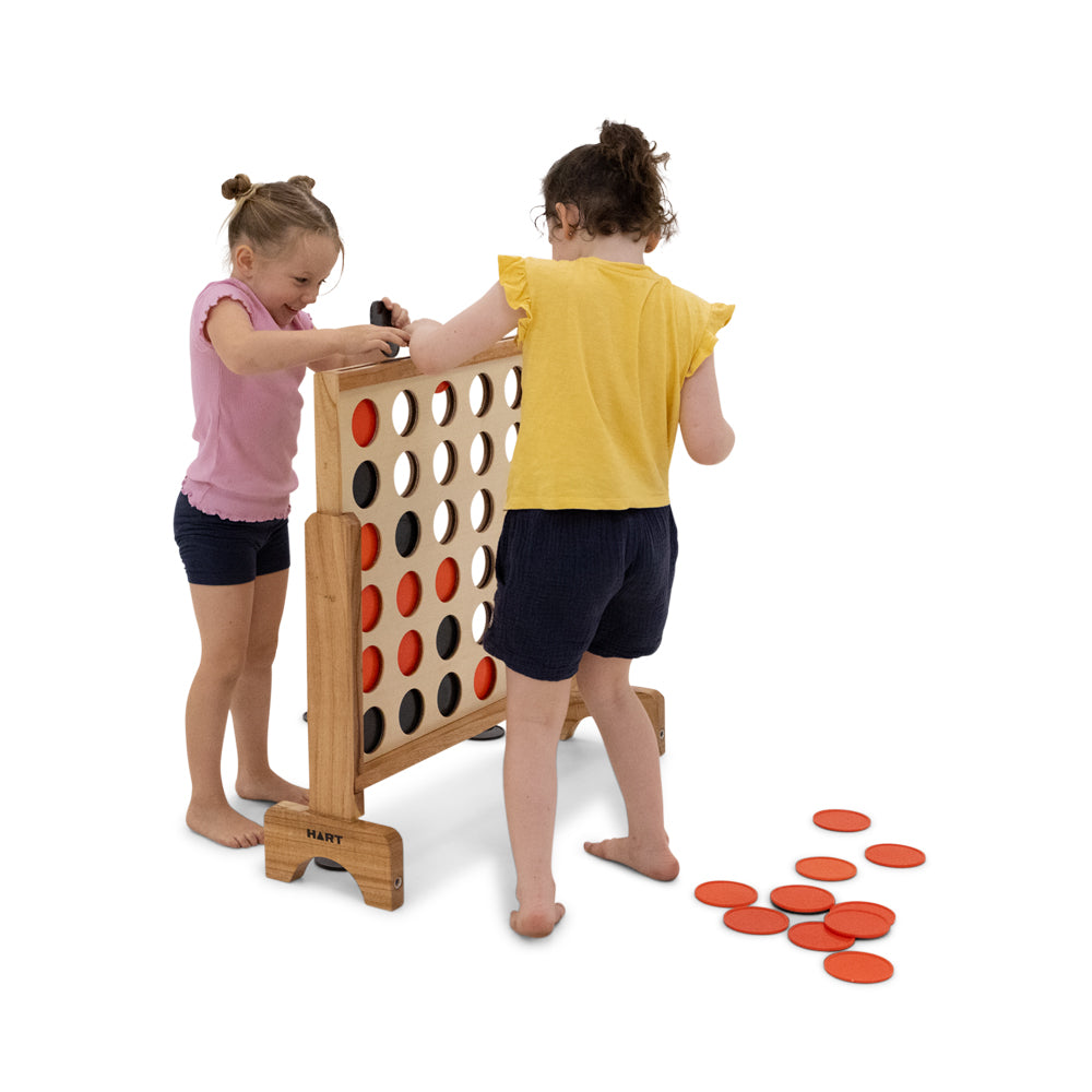 The HART Giant Drop Four is an oversized strategy game that promotes teamwork and critical thinking. With 21 red and 21 black discs, a stable design, and easy assembly, it’s perfect for schools and events. Store undercover when not in use to protect against the elements.