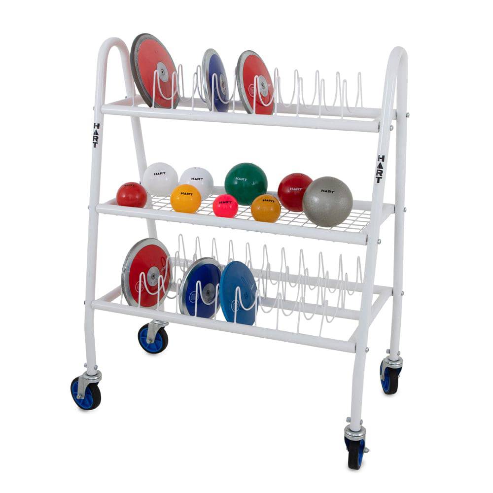 HART Discus and Shot Put Cart is great, mobile storage solution for your athletics equipment. The cart is constructed with tubular steel with a powder coated finish and durable wheels. The HART Discus and Shot Put Cart holds up to 12 Shot Puts and 30 Discus.