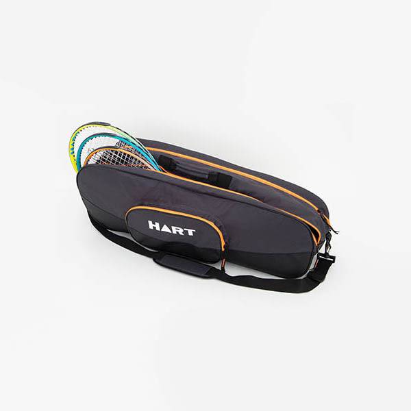 Carry all your tennis essentials in the HART Eclipse Racquet Bag. The bag has two padded compartments which comfortably holds three full-size tennis racquets each as well as two side pockets to hold spare balls or your personal belongings.