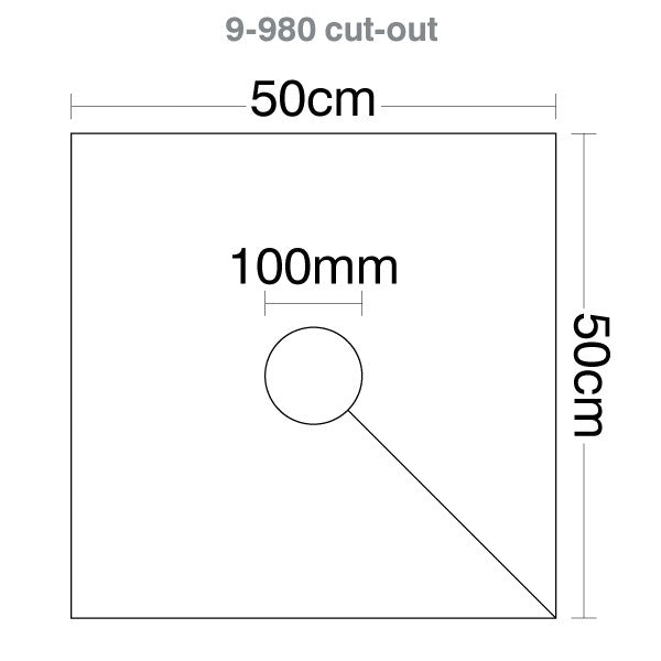 - Size: 183cm x 50cm with either 100mm diameter or 150mm diameter cut out.