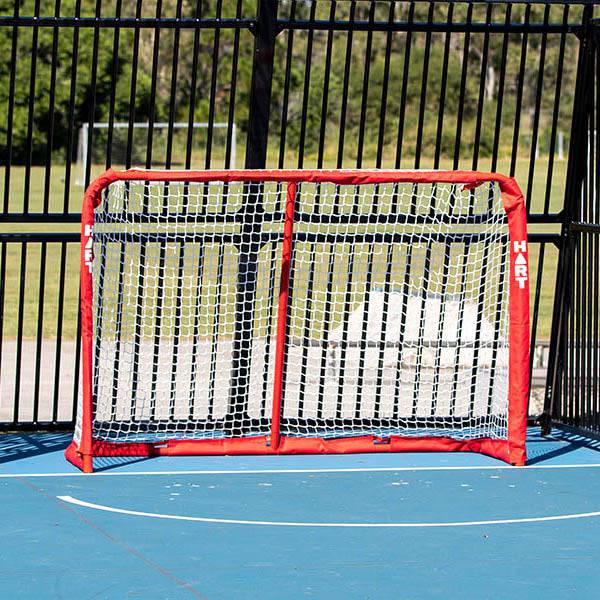 HART Training Hockey Goal is a lightweight portable goal made from powder coated metal tubing with a heavy duty net. Easy to assemble with no tools required.